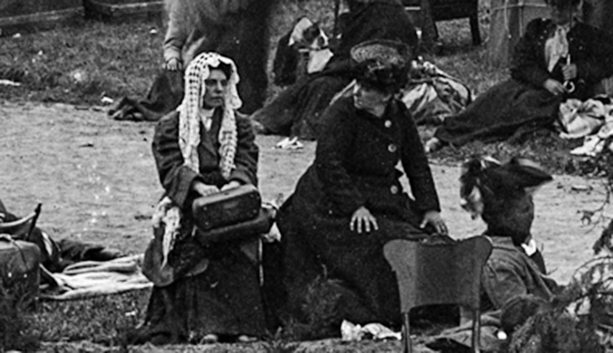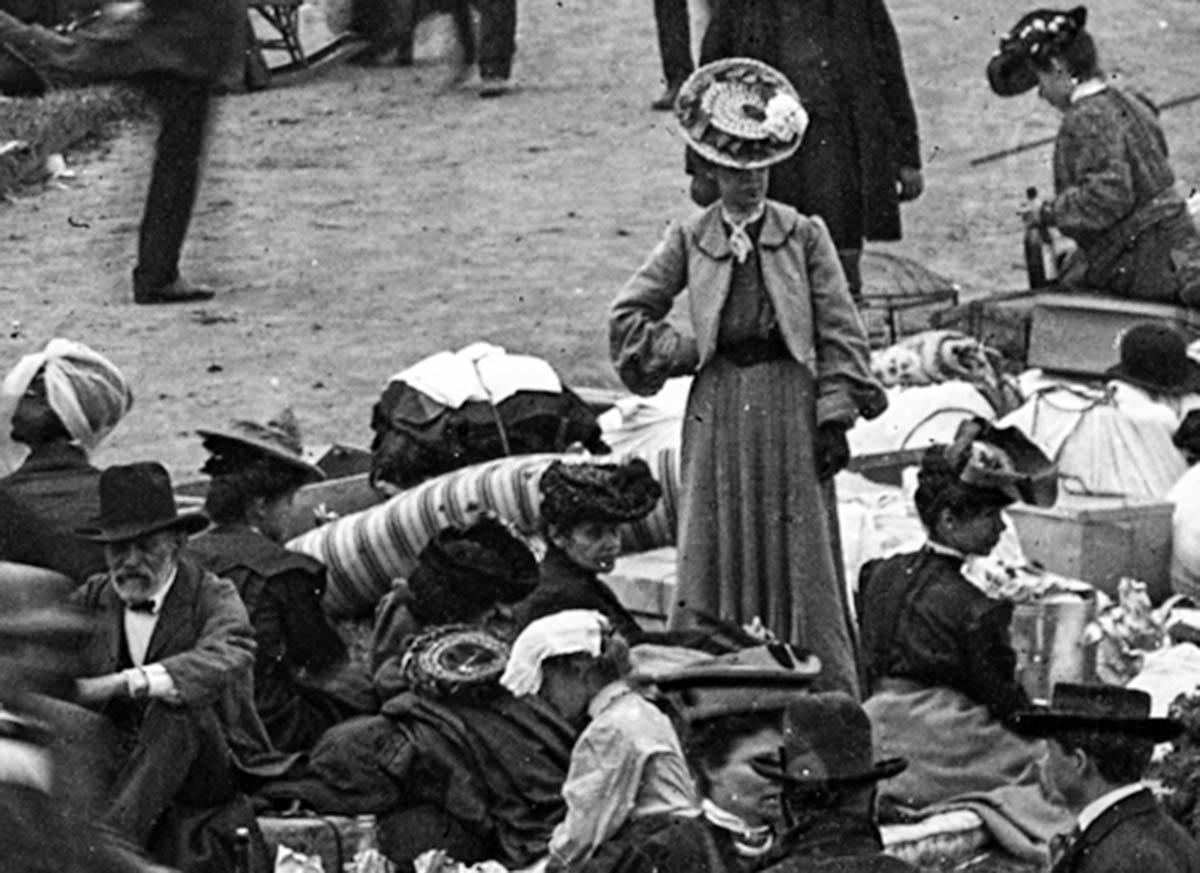 There are many 1906 earthquake-related photographs online, including a large gallery on OpenSFHistory. One of the most impressive images to me isn’t one of fire or rubble, but of a crowd of refugees gathered in Hamilton Square in the immediate aftermath of the earthquake and surrounded by the few belongings they could drag with them. In their faces you can see shock, worry, and bewilderment.