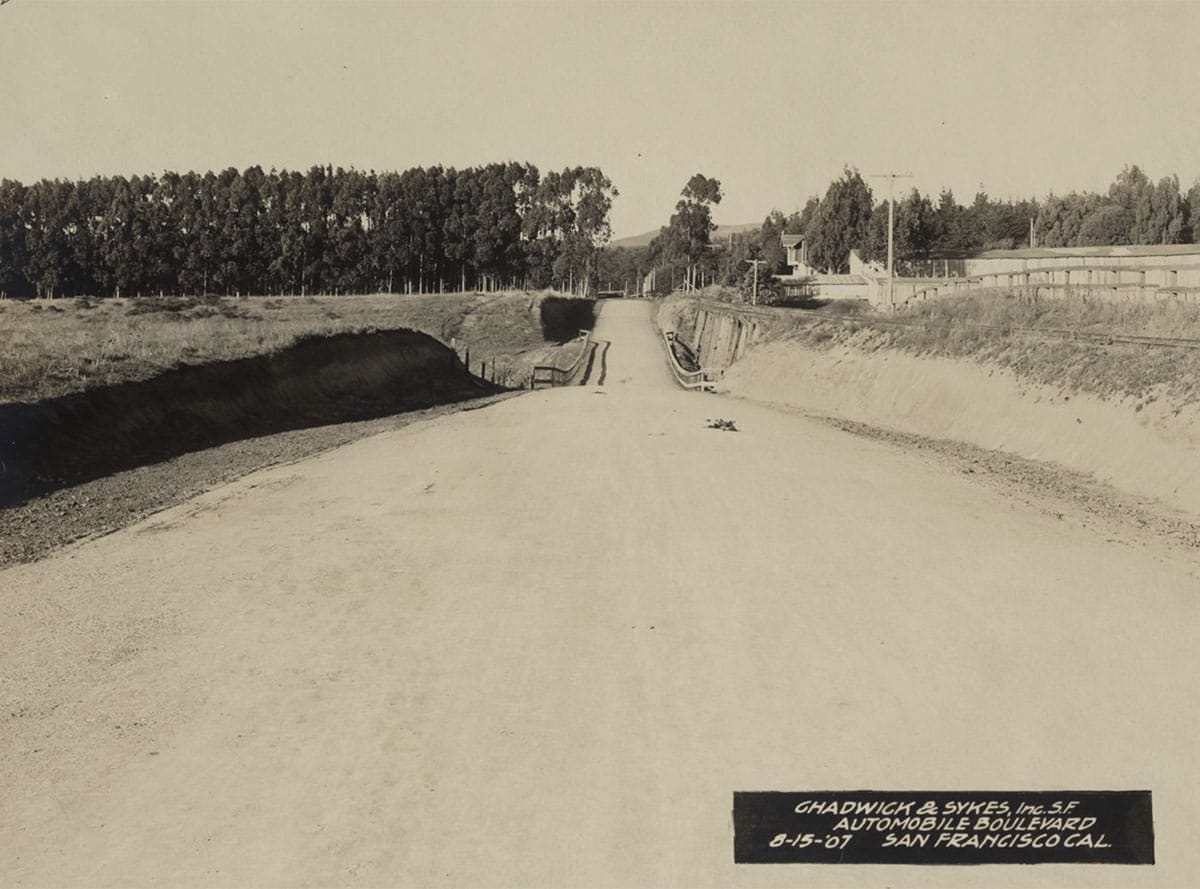 As part of the plan, a beautiful paved extension of 19th Avenue was laid to what is today Sloat Boulevard. From there, a slight bop east around Spring Valley Water Company land got you on a wide new road to the county line.