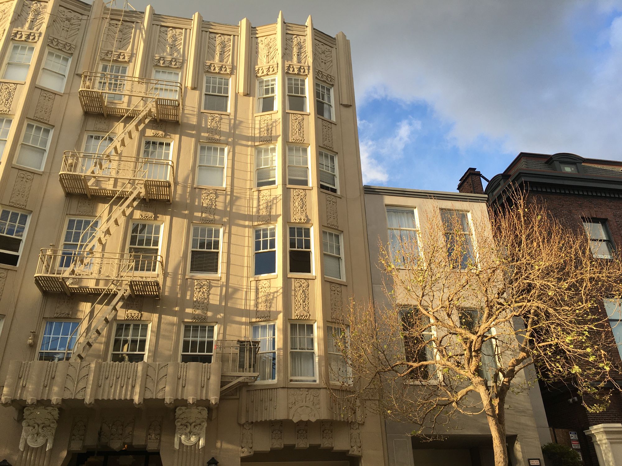 One of my more harmless hobbies is tooling around on Google Street View (or, more pleasurably, on foot) to compare views in historical photographs to present conditions. The Newhall mansion on Pacific Avenue is long gone, replaced by a very nice 1932 Art Deco apartment building and a smaller in-fill residence from the late 1990s, occupying what was a driveway. But I was surprised and delighted to find a remnant of the old Newhall mansion still onsite.