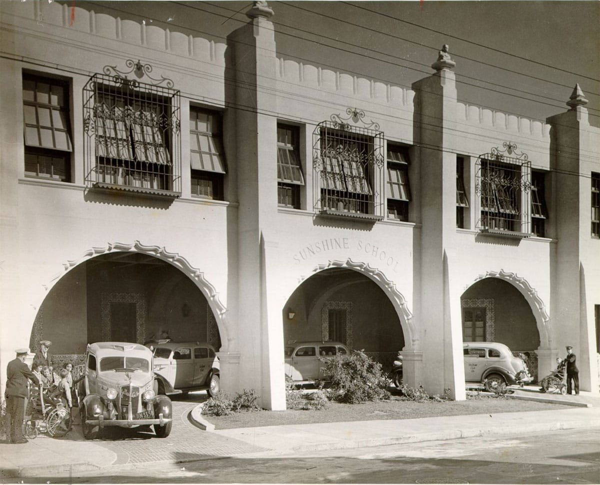 By 1931, there were 90 students at Sunshine School and the staff had grown to 10, including a physical education teacher assigned with personalized exercises for each child. The PTA bought the school handsome wicker wheelchairs for the school’s use and covered the lunch expenses for needy families. The Rotary Club kept up its support.