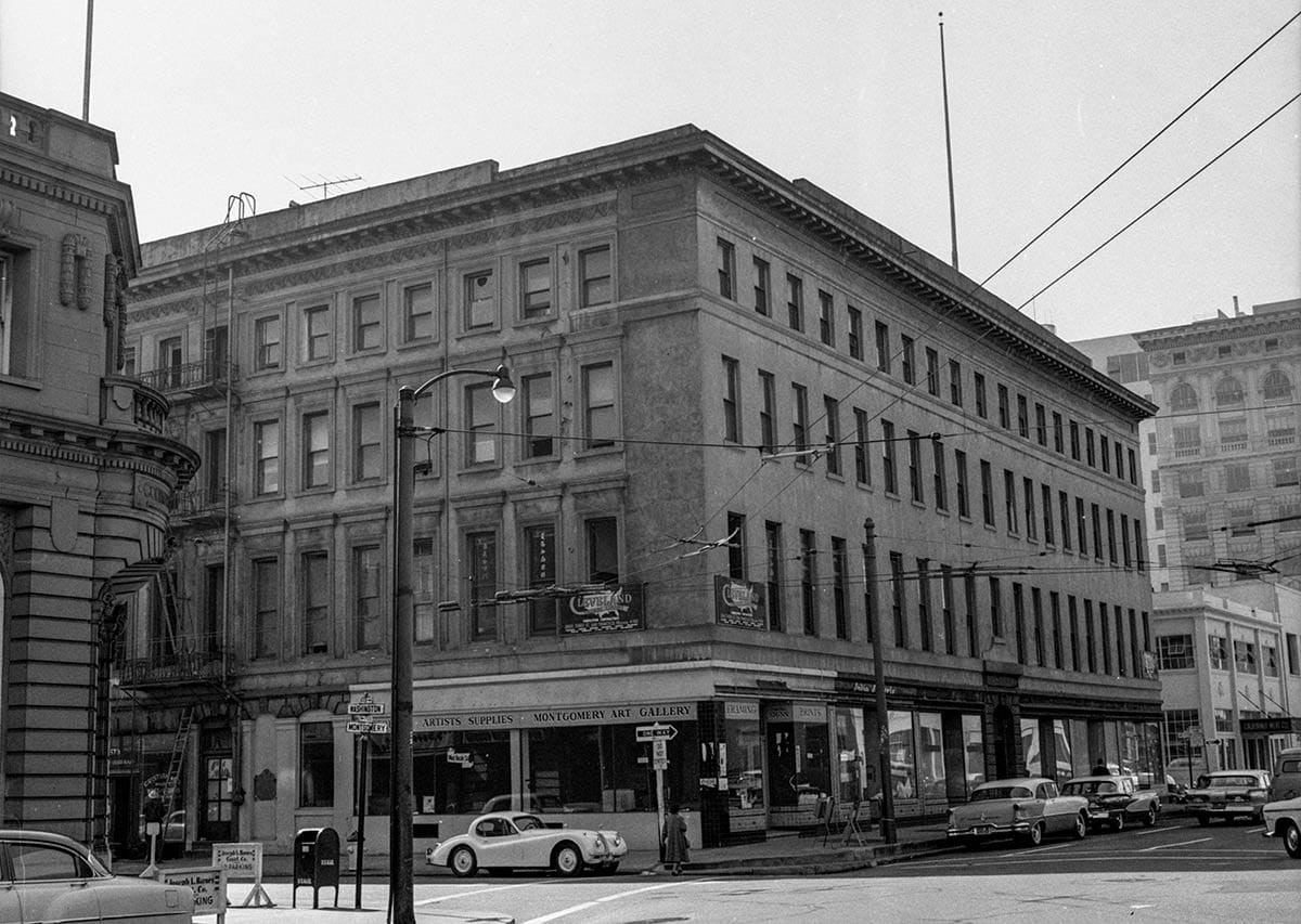 Two generations of San Francisco’s arts community made a home in the Montgomery Block. Name any writer, poet, or painter associated with or visiting the city between the 1870s and the 1940s—Mark Twain, Emma Goldman, Jack London, Ambrose Bierce, Mary Austin, Gelett Burgess, Xavier Martinez, Dorothea Lange, Maynard Dixon, Frida Kahlo, Otis Oldfield, Kathleen Norris, Ralph Stackpole—and you will invoke someone who walked its halls, worked in its windows, ate, and probably drank too much, at its tables.